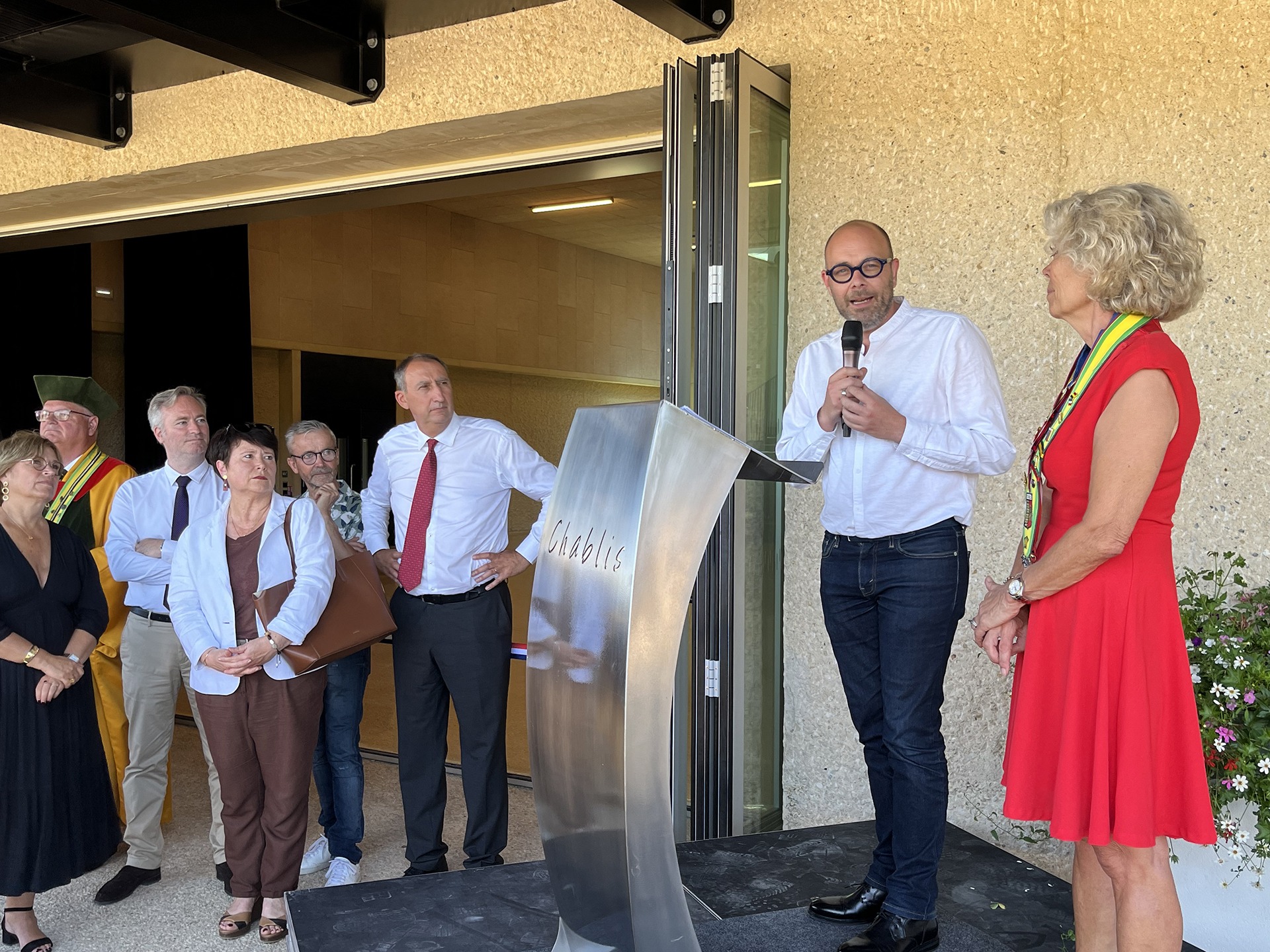 « Le Kimméridgien ». Si le nom du nouveau lieu polyculturel de Chablis ne parle pas à chacun de façon immédiate, il est pourtant chargé de sens car il fait référence au terroir du vignoble (1). Son inauguration, le 28 juin, au cœur du Parc d’activités des Violettes, a créé l’événement dans la ville petite par sa taille (2 200 habitants), mais grande par sa notoriété.