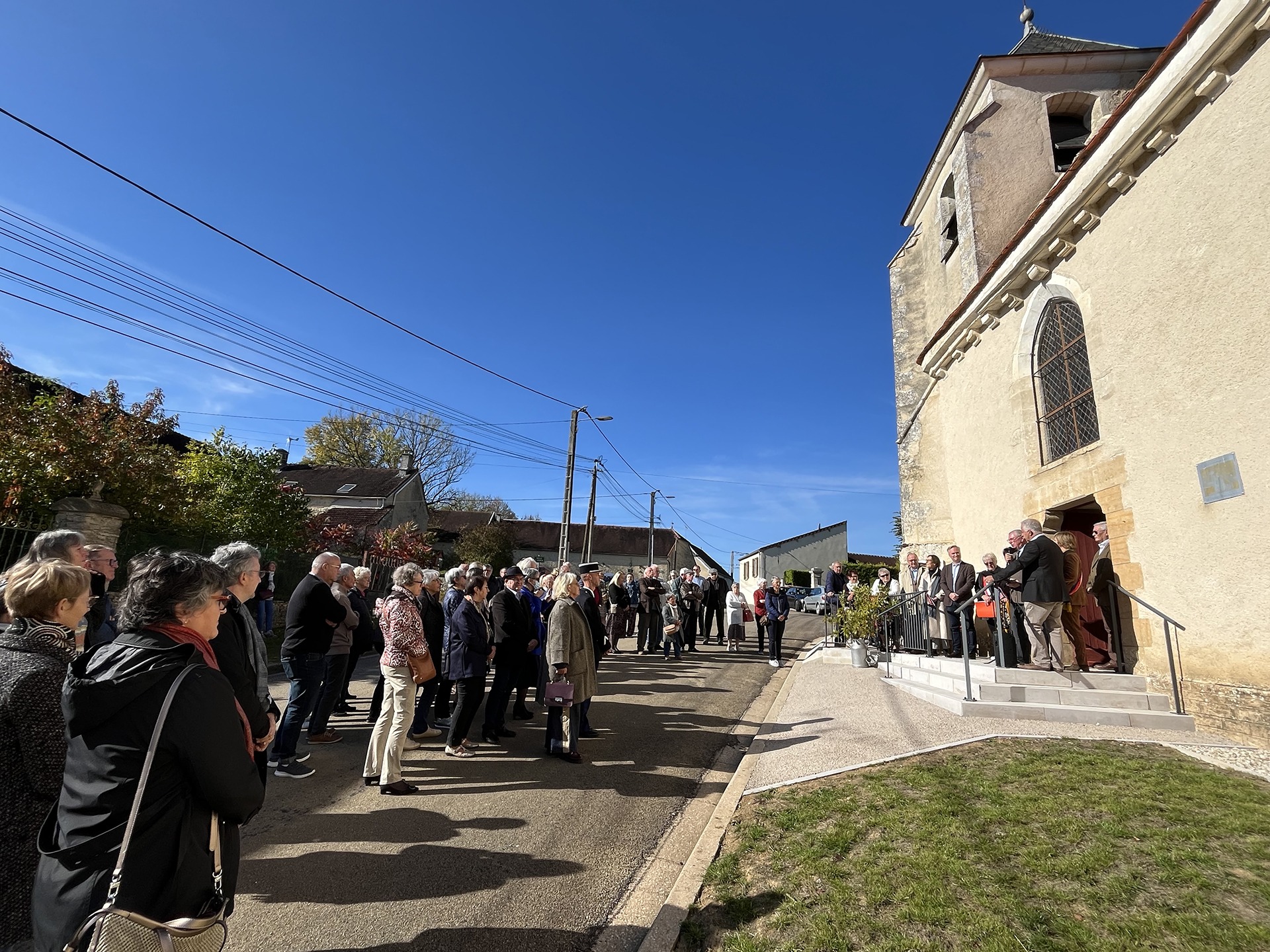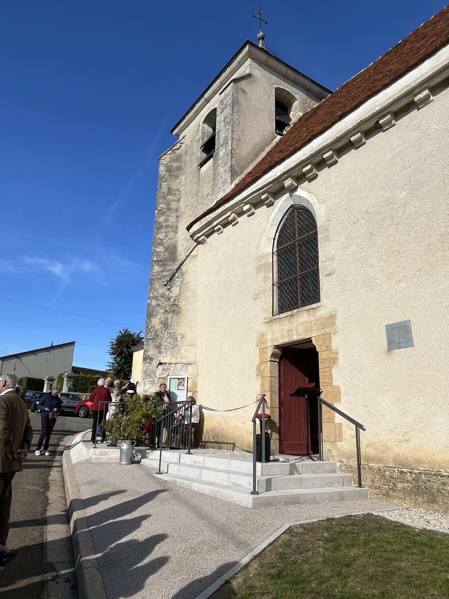 L’inauguration de la mise en accessibilité PMR (1) du parvis de l’église de Trichey a attiré autant de monde que de compliments à la maire de la commune, Delphine Griffon, élue depuis 18 ans. Si le village ne compte que 45 habitants (le double en période estivale avec les résidents secondaires), au moins autant de personnes étaient présentes ce samedi 18 octobre pour admirer le travail réalisé et rendre hommage à la ténacité de la première édile.