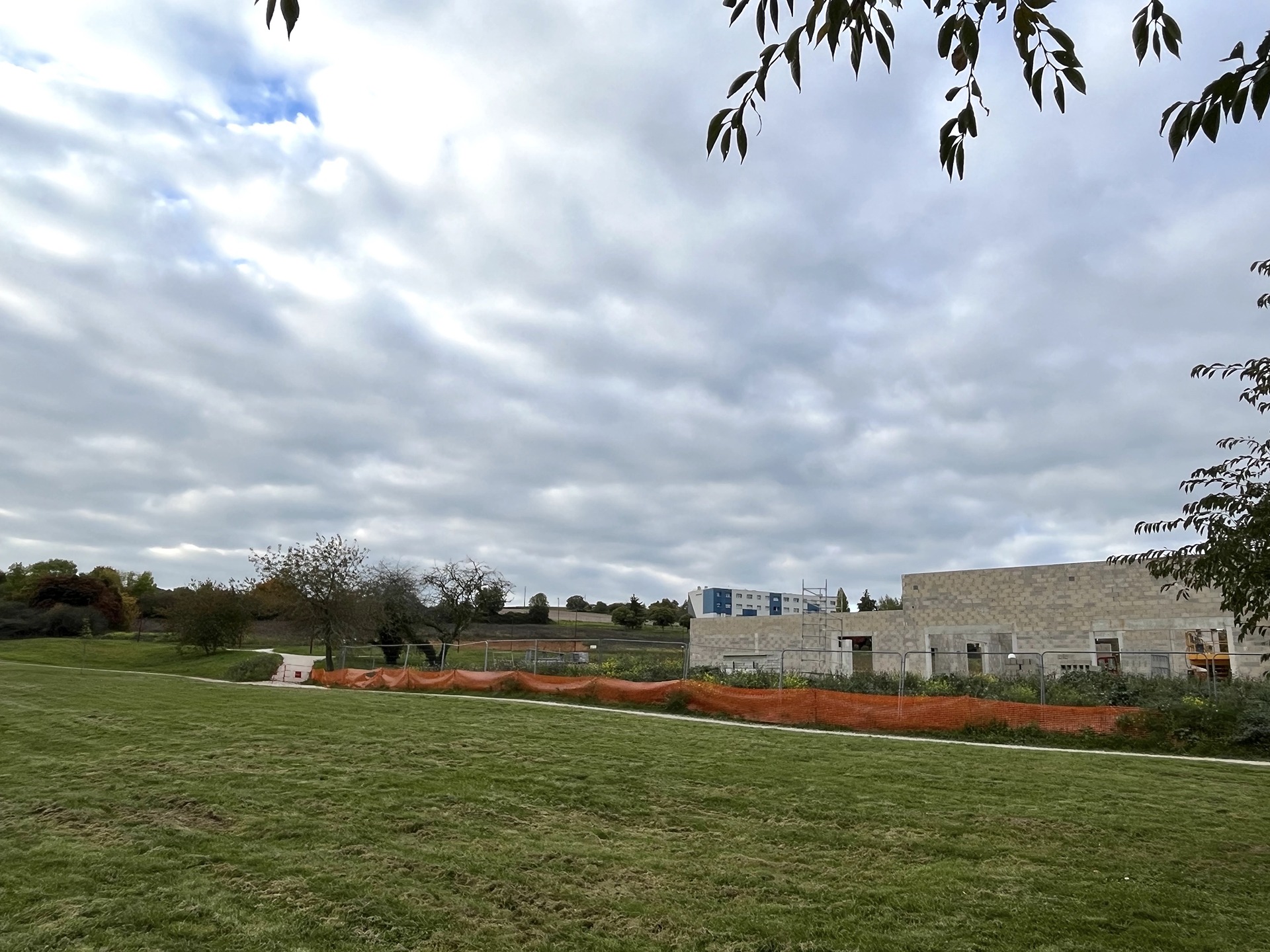 Au-dessus du centre de loisirs au gros œuvre bien avancé, derrière le parking paysager en cours d’aménagement, sera construit l’autre équipement phare de l’opération du « Champ Tortu » à Saint-Julien-du-Sault : le gymnase.
