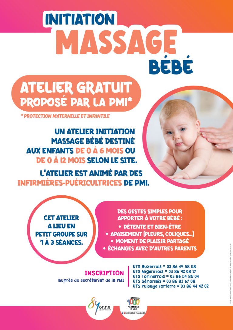 En savoir plusAtelier gratuit de la PMI : initiez-vous au massage bébé pour détente, bien-être et complicité. Inscriptions auprès du secrétariat.